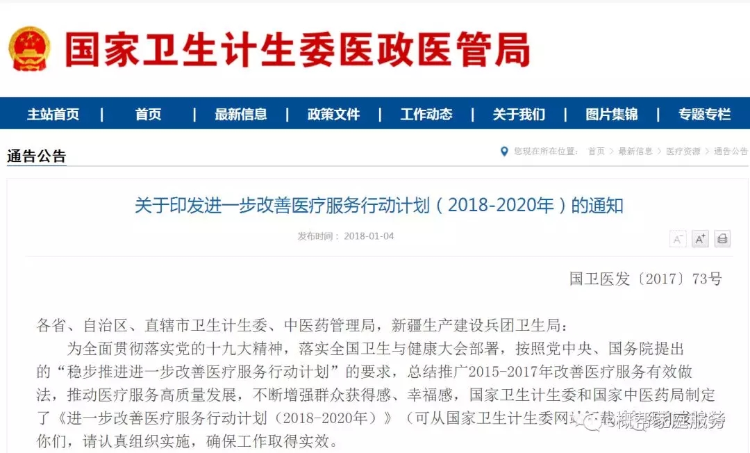 隨著十九大的結(jié)束,國(guó)家新政策的出臺(tái),對(duì)于醫(yī)院服務(wù)的要求也提上日程,國(guó)家衛(wèi)生計(jì)生委醫(yī)政管理局《進(jìn)一步改善醫(yī)療服務(wù)行動(dòng)計(jì)劃(2018-2020年)》報(bào)告中指出:醫(yī)療機(jī)構(gòu)不斷改善設(shè)施環(huán)境,標(biāo)識(shí)清晰,布局合理。加強(qiáng)后勤服務(wù)管理,重點(diǎn)提升膳食質(zhì)量和衛(wèi)生間潔凈狀況。有條件的醫(yī)療機(jī)構(gòu)可以在公共區(qū)域?yàn)楹蛟\患者提供網(wǎng)絡(luò)、閱讀、餐飲等舒緩情緒服務(wù),為有需要的住院患者提供健康指導(dǎo)和治療飲食。